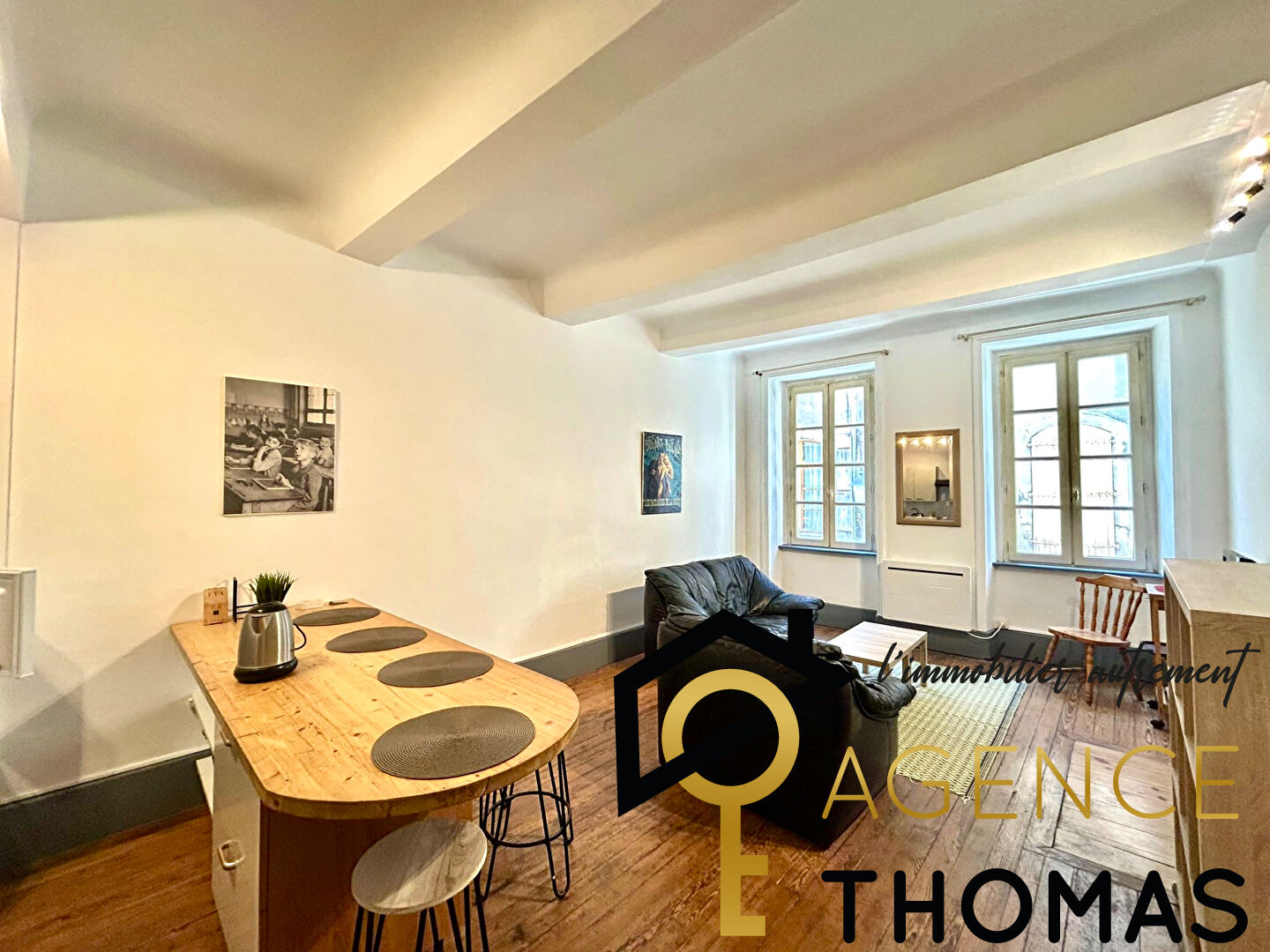 L'Agence Thomas vous propose en location MEUBLÉE, un appartement T2 au coeur du centre ville composé d'une pièce de vie avec une cuisine équipée ouverte, une chambre et une salle d'eau et un WC séparé.